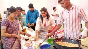 UKG children made peanut chaat. Under their teacher’s guidance, they combined roasted peanuts, chopped onions, and spices, mixing everything with enthusiasm. The activity not only taught them about healthy eating but also fostered teamwork, making it a fun and memorable experience.